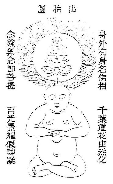 The book Leng Yen says: 'By collecting the thoughts one can fly and will be born in Heaven. Heaven is not the wide blue sky, but the place where the body is made in the house of the creative. If one keeps this up for a long time, there develops quite naturally in addition to the body, yet another spirit-body.'