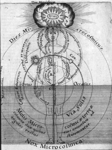 Fludd : Utriusque Cosmi Historia(PDF); Oppenheim The occult man: The higher mental regions and the black "vital" regions ("of samsara") -- "Dies" means "Day", and "Nox" means "Night" |