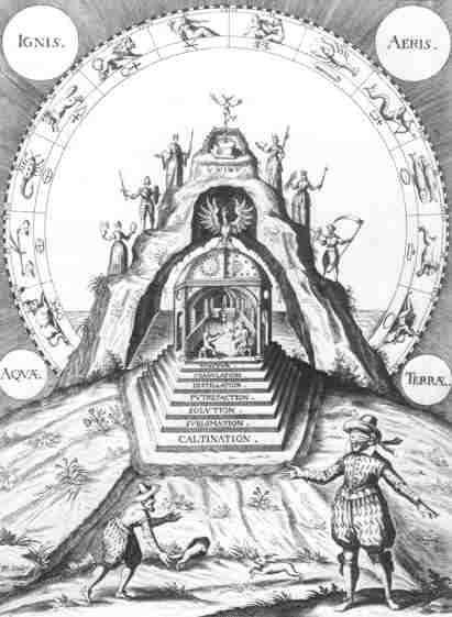 Spiritual alchemy is also a branch of hermetics that represents the transformation process in a secret language of pictures, similar to tantra. The slogan here is OPUS MAGNUM, which leads externally to the stone of first order and then to the so-called 'stone of the wise' or 'red lion' and finally to the transmutation.