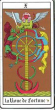 On the card 10 the Sphinx is increased and leads an independent existence. The winged logos is already visible on card 7. It has now become a part of the heart's powers.